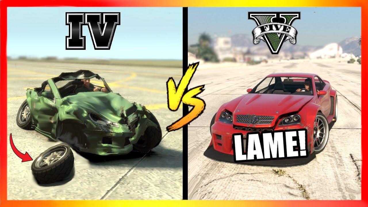 I find it weird that in gta 4 the car deformation is better than 5 but 5 has some details better than 4 like the wheels and bumper coming off without the car exploding Comment from : Alexander Lindo |
